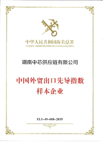 湖南中芯供应链获评中国外贸出口先导指数样板企业