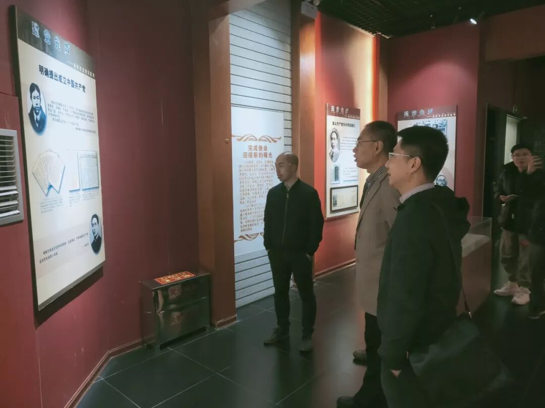在副关长周波的带领下,一行人参观了新民学会陈列,深入了解新民学会的历史,了解中国共产党的成立。五四运动前后,新民学会发起了湖南青年赴法勤工俭学运动,领导湖南学生寻找革命真理,联合各界人士开展了一系列反帝反封建斗争。新民学会核心成员大力宣传马克思主义和俄国十月革命,成立了湖南俄罗斯研究会,创办了文化书社,筹组了长沙社会主义青年团,并于1920年创建了中国共产党长沙早期组织。1921年,毛泽东、何叔衡代表中国共产党长沙组织参加了中共“一大”,为中国共产党的创建作了思想上、理论上、干部上的准备。新民学会对中国的事业和命运产生了广泛的影响,在中国革命史上,被誉为“建党先声”。