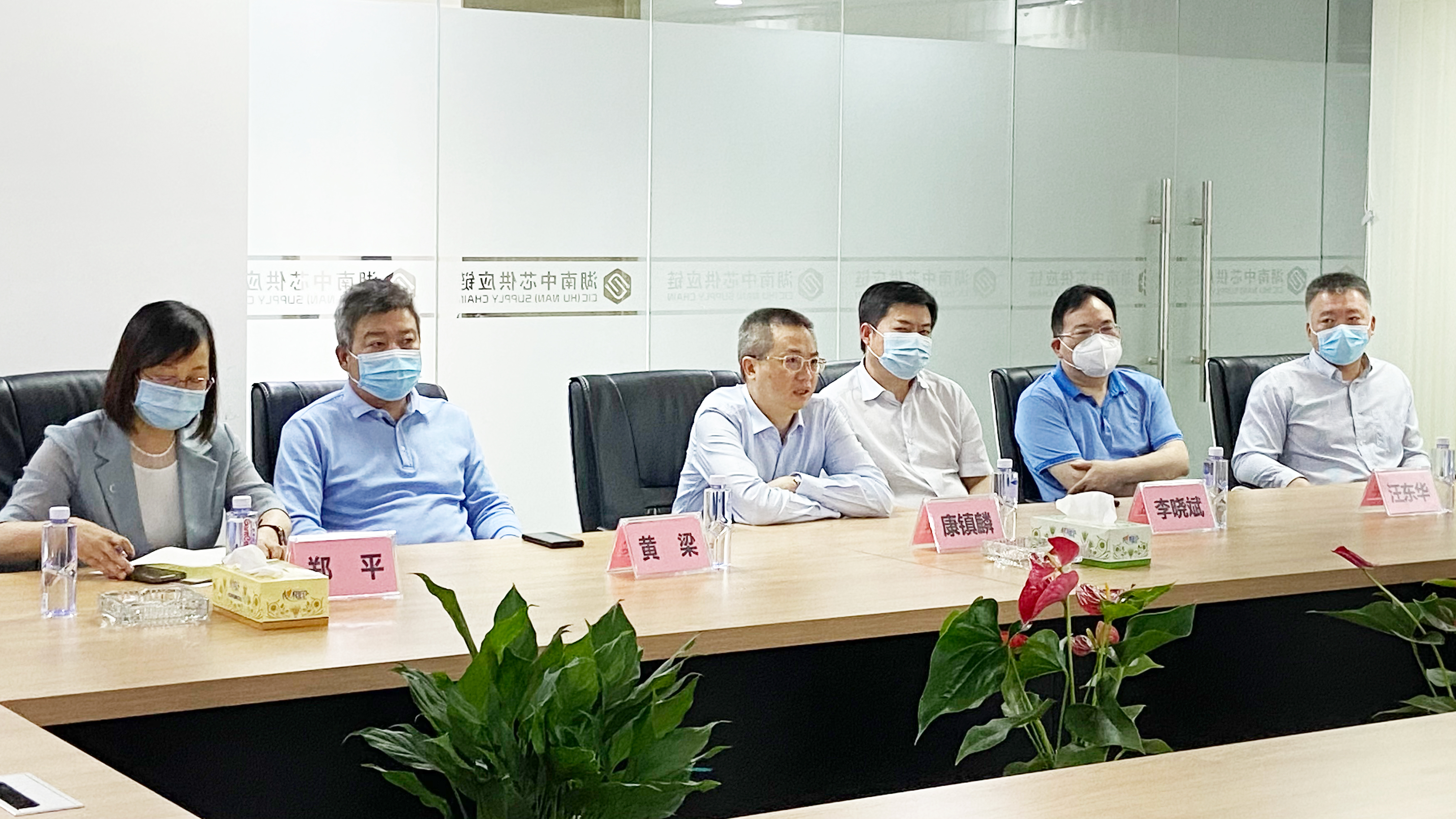5月9日,长沙市政府副市长、市工商联主席康镇麟及市政府副秘书长李晓斌等领导一行,莅临中芯供应链长沙驻地指导工作,华芯控股副总裁张继敏及中芯供应链运营中心总经理赵行之率队接待。