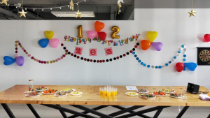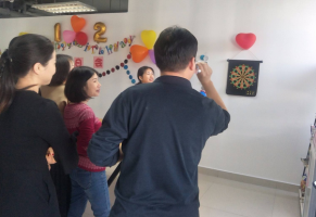 1-2月共有10名同事生日,所以此次生日会的场面也是十分的热闹有趣,由行政和前台精心布置的会场漂亮又有爱,还有满桌的零食与蛋糕让大家一饱口福,写心愿条的小环节温馨又有趣,掷飞镖游戏更是让整个活动达到高潮。