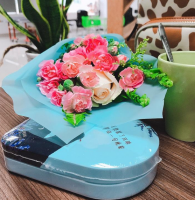 今天是3月8号,女生们的节日,刚到办公室就看到摆放在桌上的鲜花和巧克力,粉色的洋桔梗象征无邪与美丽,香槟玫瑰是幸福的代表。就连巧克力盒都是充满童趣的画风。